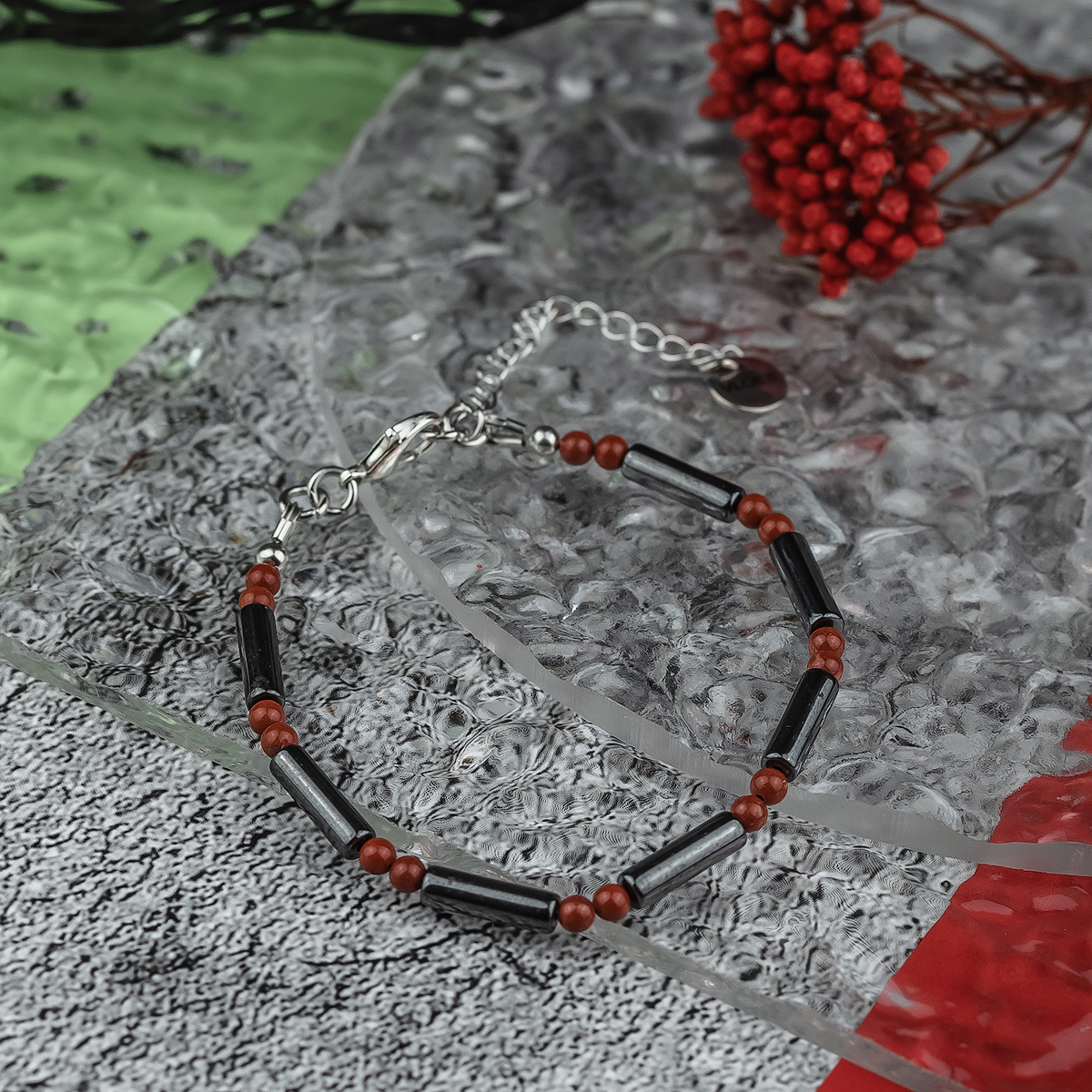 Вставка: муранское стекло, гематит, яшма