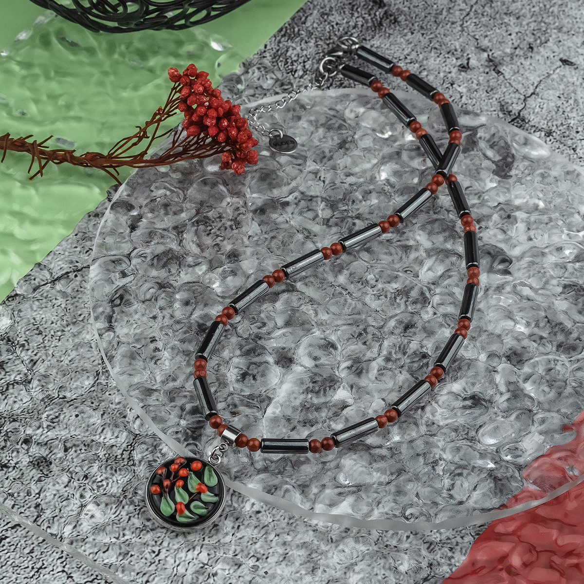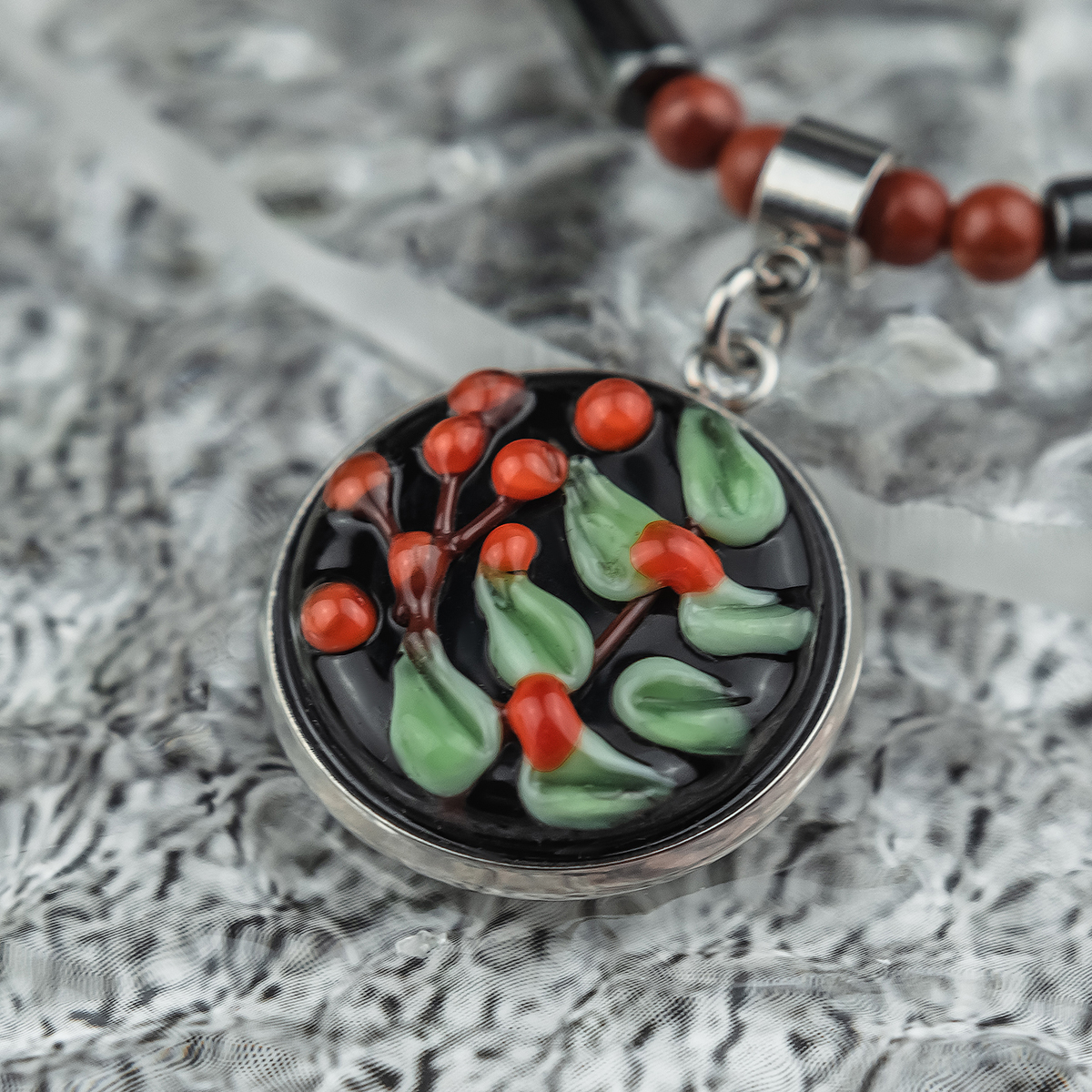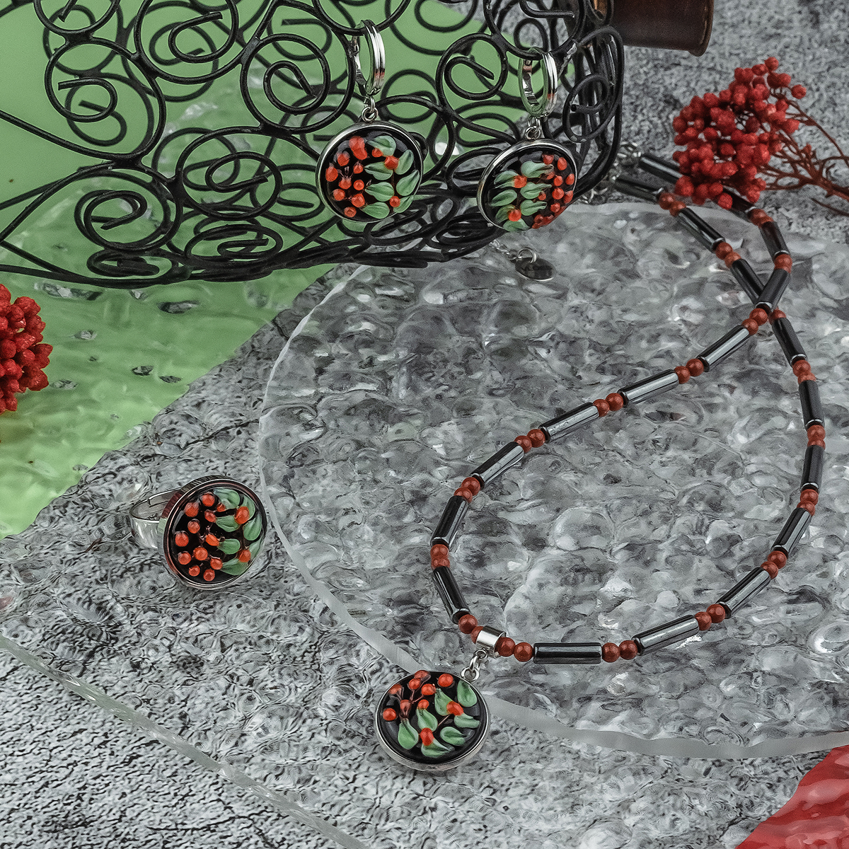 Вставка: муранское стекло; гематит; яшма