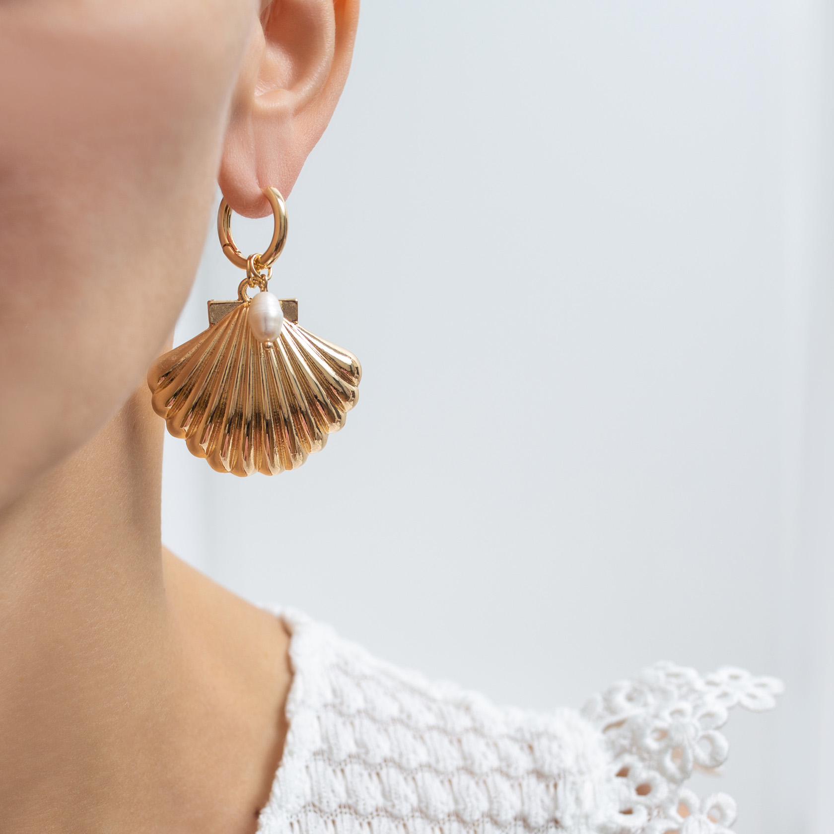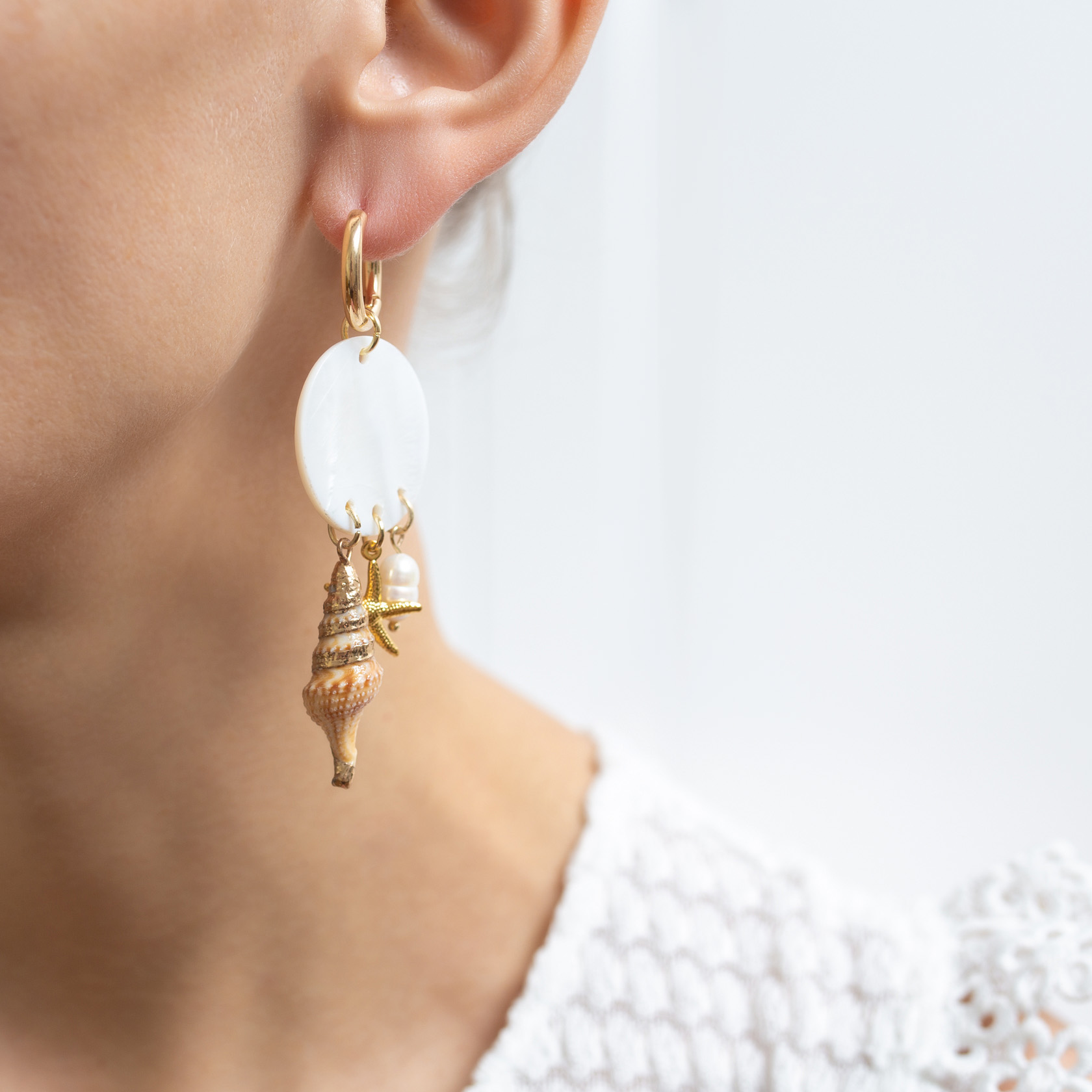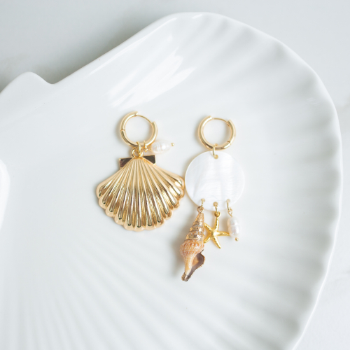 Ювелирный сплав, золочение, ракушки, речной жемчуг.