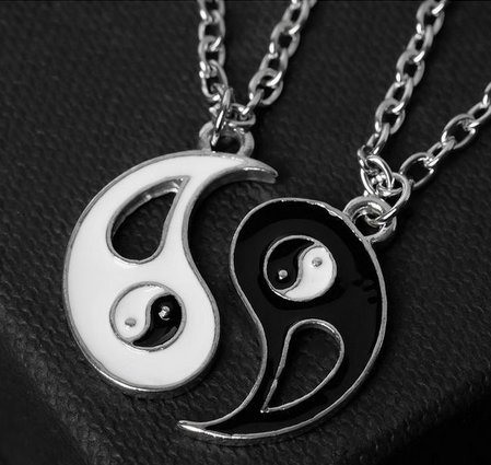 Кулоны "Неразлучники" Инь-янь, капли, цвет чёрно-белый в серебре, 45 см