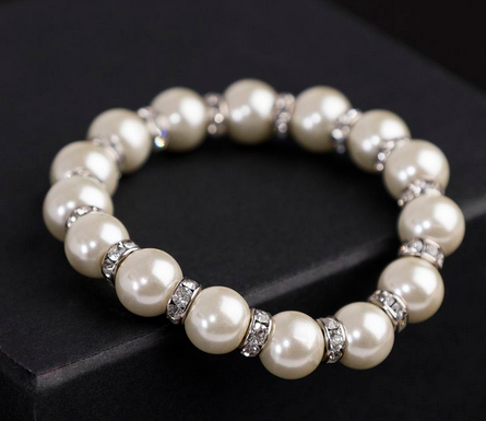 Браслет жемчуг "Невеста" бусины d=1,5, со стразами, цвет молочный