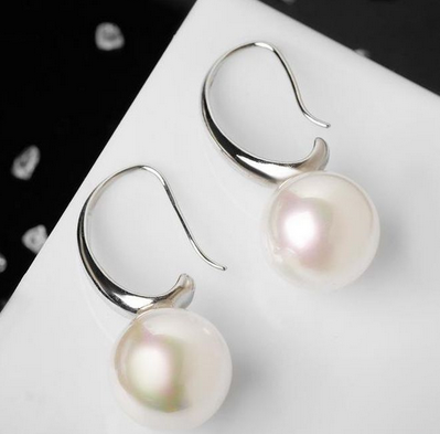 Серьги с жемчугом "Капля" полукруг, цвет белый в серебре