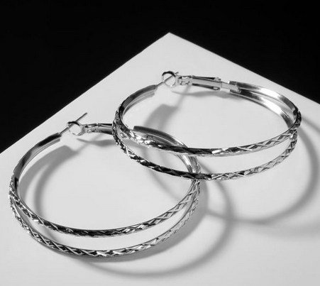 Серьги-кольца "Карма" косичка, цвет серебро, d=5