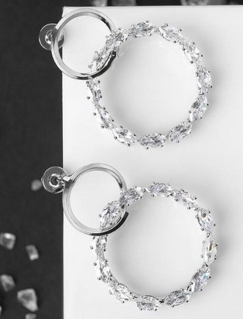 Серьги со стразами "Вспышка" два круга, цвет белый в серебре