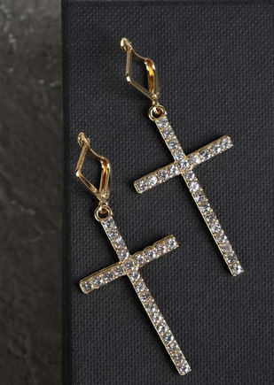 Серьги со стразами "Крестики" на квадрате удлинённые, цвет белый в золоте