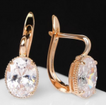 Серьги со стразами "Классика" мини овалы, цвет белый в золоте