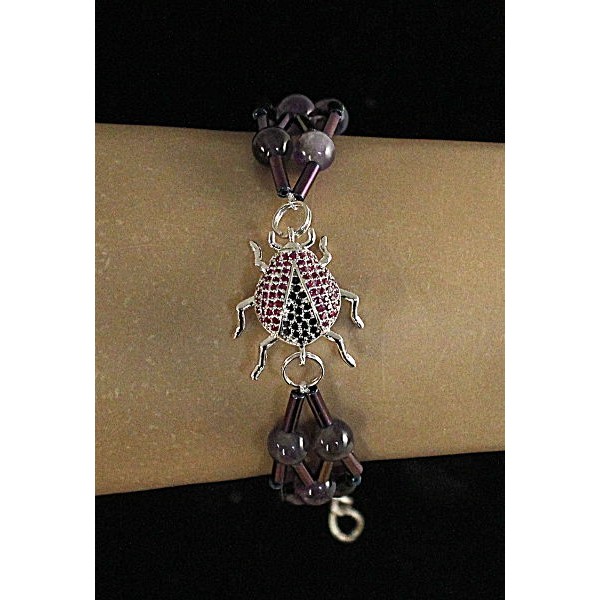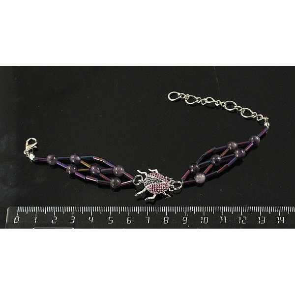 Браслет "божья коровка" аметист, стеклярус