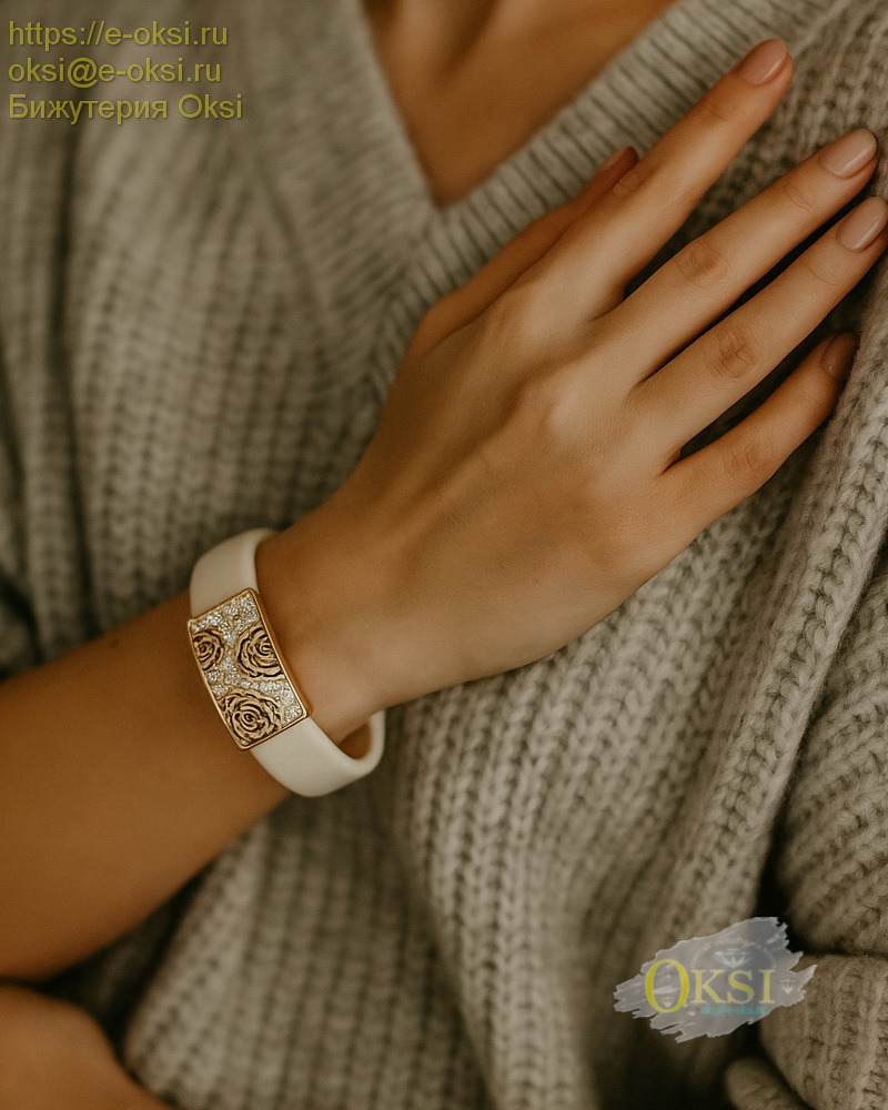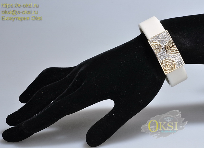 Стильный браслет из высокопрочного акрила цвета '' айвори '', украшен сверкающими кристаллами.. Благодаря особой конструкции комфортно и удобно сидит на руке , не мешает вести активный образ жизни. Высота браслета 2 см., в диаметре 6,5 см х 5 см ( размером от 15 см до 18 см в запястьи руки ).