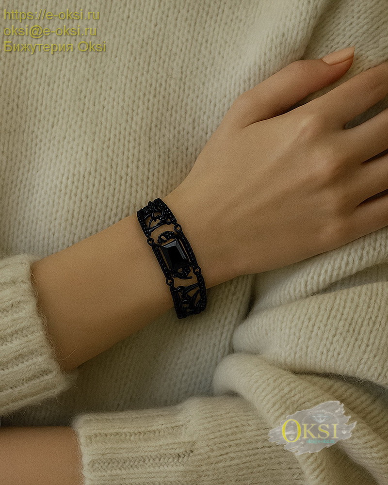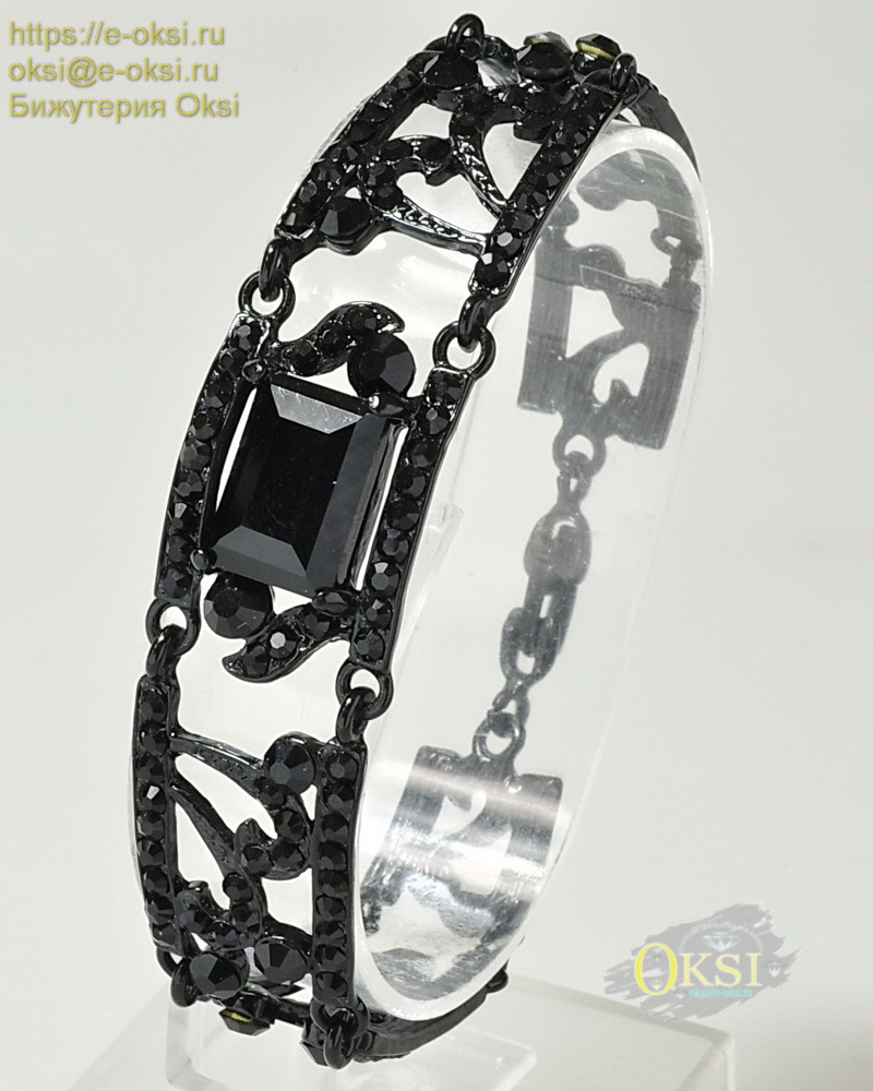 Роскошный вечерний браслет, с крупным австрийским кристаллом, полностью инкрустирован мелкими фианитами. Качественное черненое родиевое покрытие. Длина 18,5 см. Ширина 2 см..