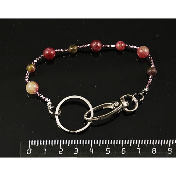 Браслет-брелок кварц (цвет турмалин), гематит