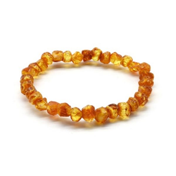 Браслет для детей из цельного янтаря "кусанка" 5мм цвет коньячный, 13см.