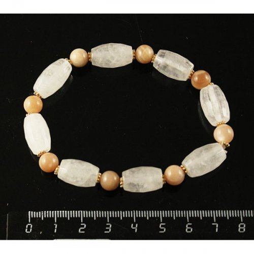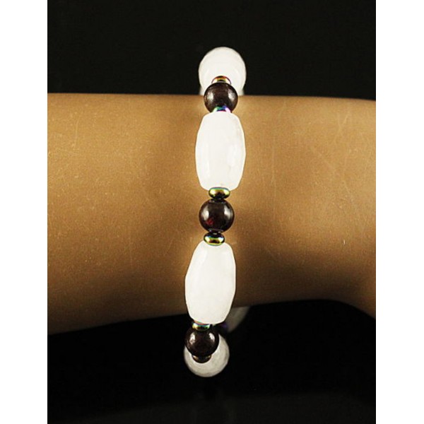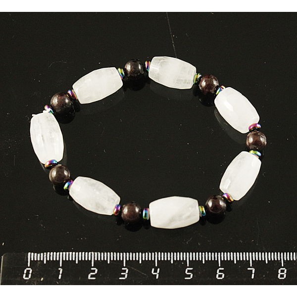 Браслет горный хрусталь (бочонок), гранат (шарик), гематит (рондель)