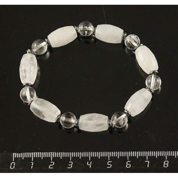 Браслет горный хрусталь (бочонок и шарик), гематит (рондель)