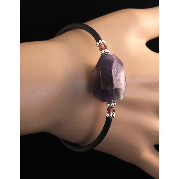 Браслет из аметиста на струнке, крупная огранка 24х17мм