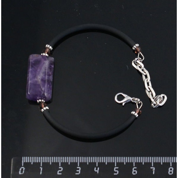 Браслет из аметиста на струнке, прямоугольник 24х14мм
