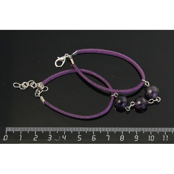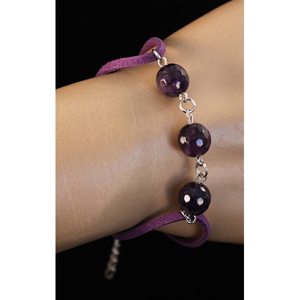 Браслет из аметиста (огранка) "3 шарика", шарик 10мм, на шнурке