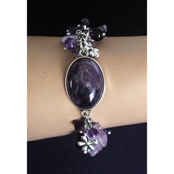 Браслет из аметиста, овал 25х18мм + шарик, на цепочке