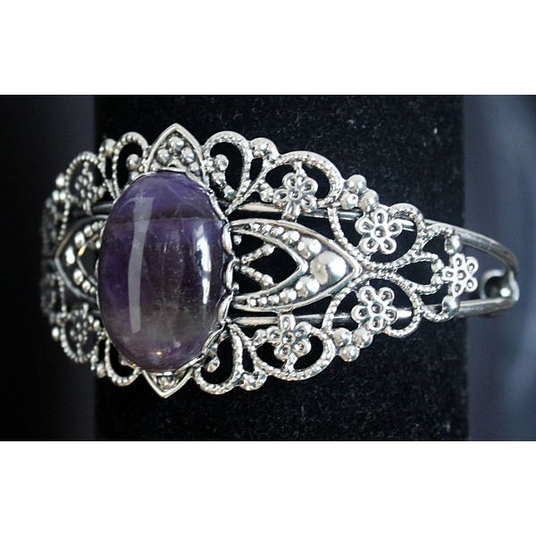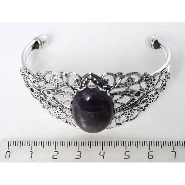 Браслет из аметиста, овал 25х18мм, жесткая основа цвет ант.серебро