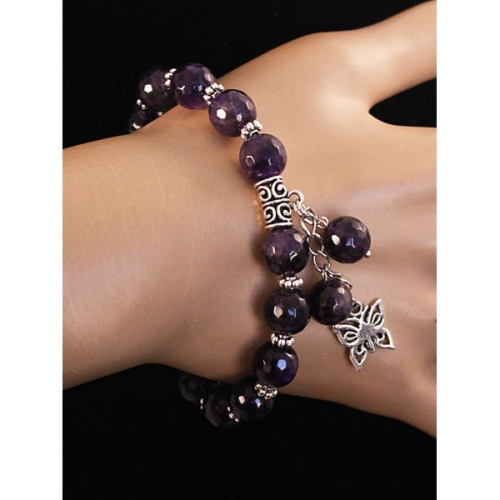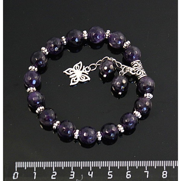 Браслет из аметиста, шарик 10мм, огранка, с подвеской