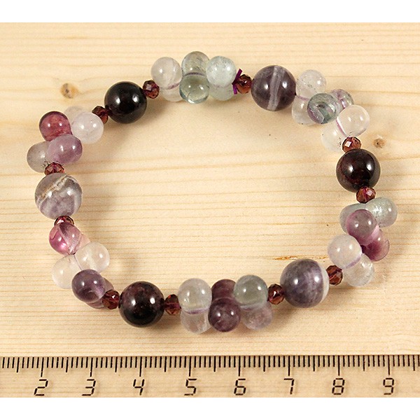 Браслет из флюорита (косточки), граната и аметиста (шарик 10мм)