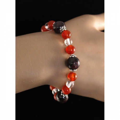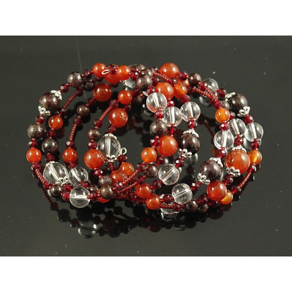 Браслет из граната, горного хрусталя и сердолика на струнке 5-6 оборотов