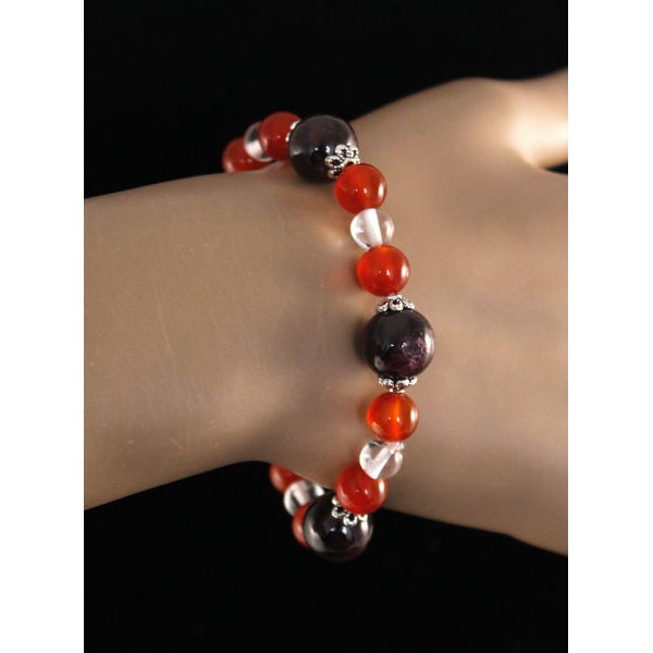 Браслет из граната, сердолика и горного хрусталя, шарик 11,8 и 6мм
