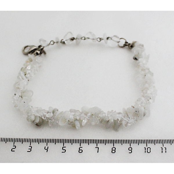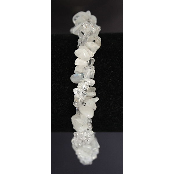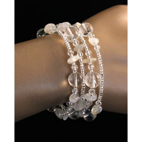 Браслет из лунного камня (беломорит) и горного хрусталя, галтовка, жгут 2 нити