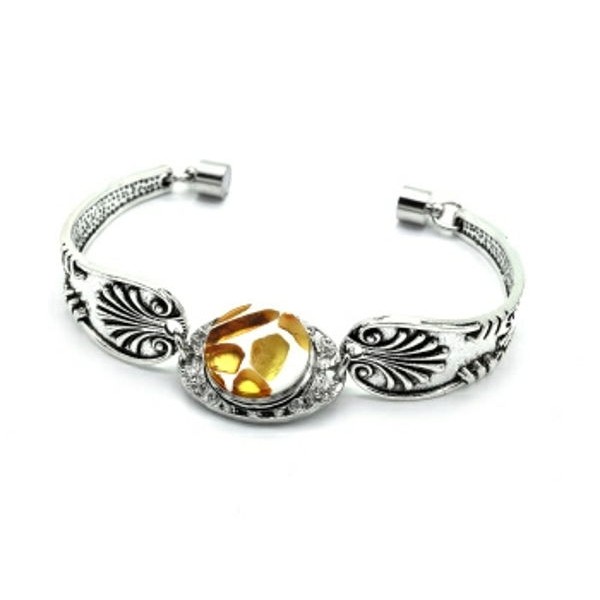 Браслет из медицинской стали с янтарем мозаика круг 18мм, 18см