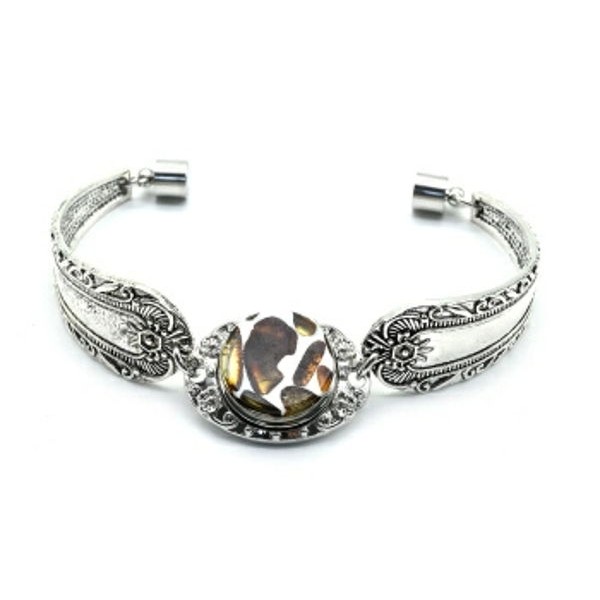 Браслет из медицинской стали с янтарем мозаика круг 18мм, 18см