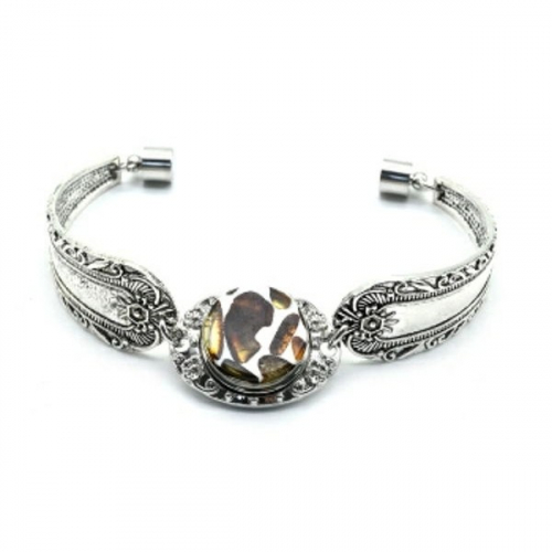 Браслет из медицинской стали с янтарной вставкой мозаика 3 круга 18мм