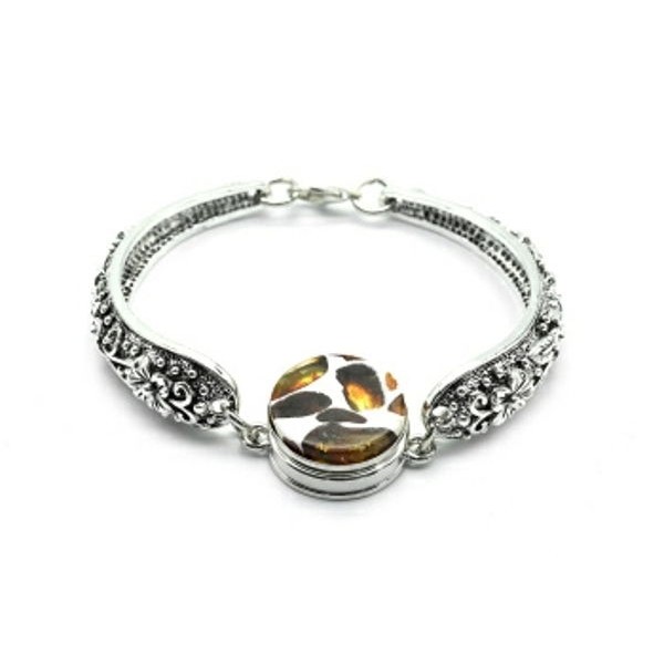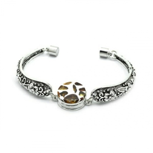 Браслет из медицинской стали с янтарной вставкой мозаика круг 18мм, 18см