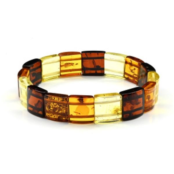 Браслет из натурального янтаря сегмент 12*12мм цвет лимонный, св.коньячный, коньячный, 10,7г, 16см