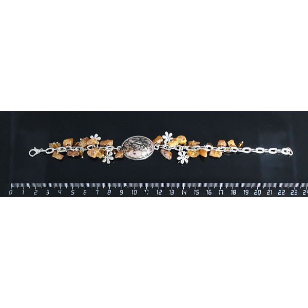 Браслет из родонита овал 25х18мм + галтовка янтарь, на цепочке