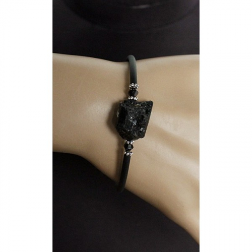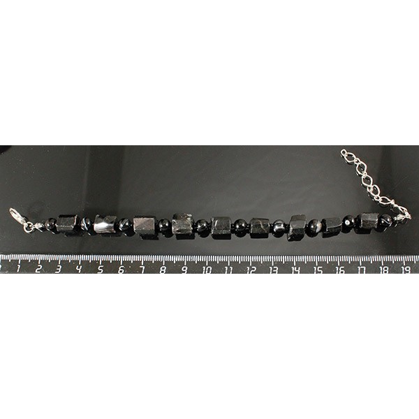 Браслет из турмалина черного (кристаллы) и агата черного (шарик 6мм), на застежке