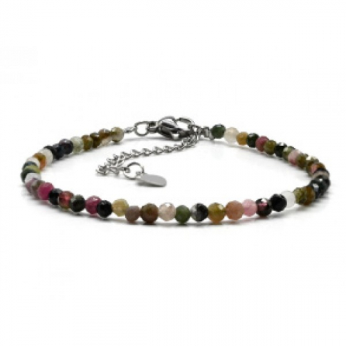 Браслет из турмалина черного (шерл), шарик 4мм огранка, на застежке