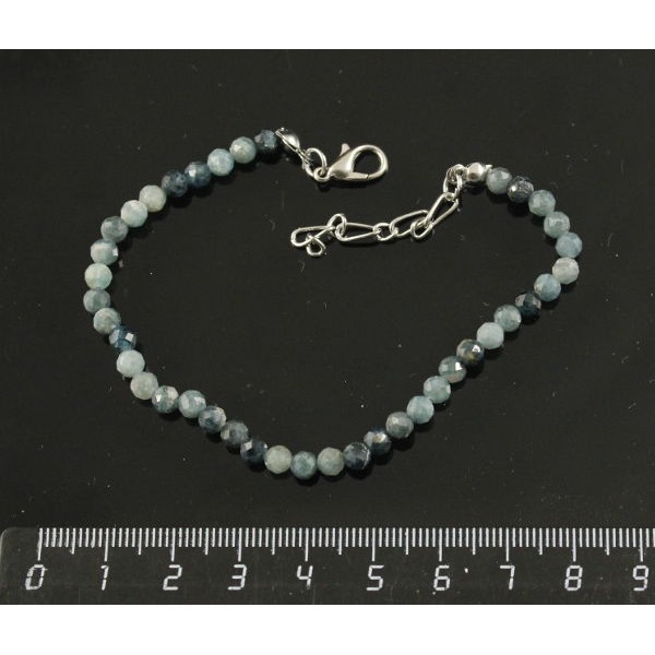 Браслет из турмалина голубого, шарик 4мм огранка, на застежке