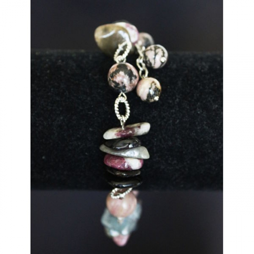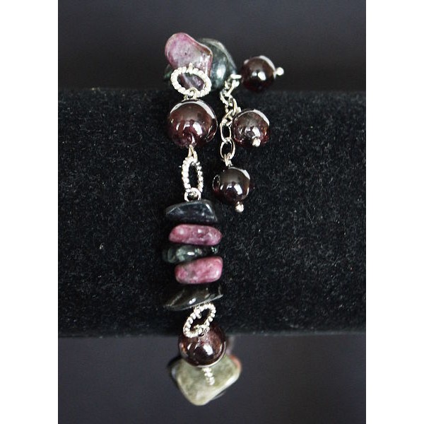 Браслет из турмалина (крупная плоская галтовка) и граната (шарик 7 и 9мм), на колечках
