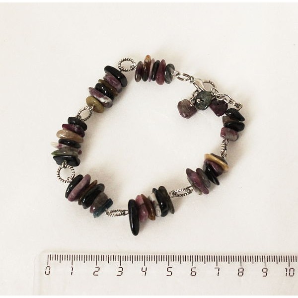 Браслет из турмалина, крупная плоская галтовка, на колечках