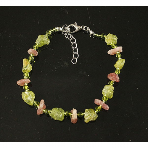Браслет из турмалина розового (кабошон-мозаика) и хризолита (кабошон-мозаика), овал, 18х13мм, на цепочке