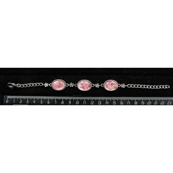 Браслет из турмалина розового (кабошон-мозаика), овал 18х13мм, на цепочке