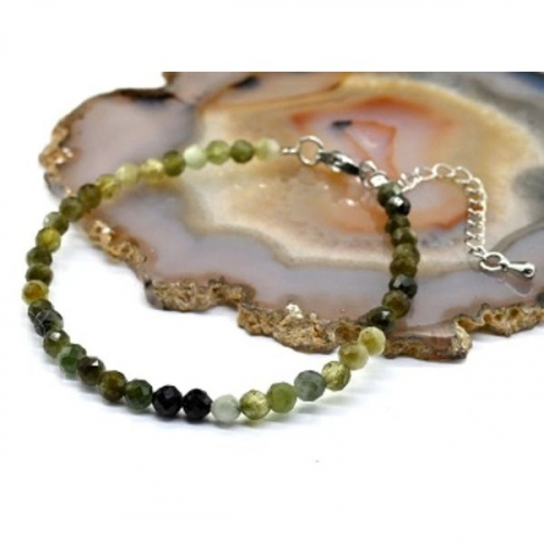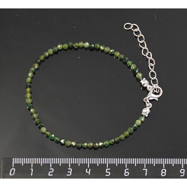 Браслет из турмалина зеленого шарик 3мм огранка, на застежке