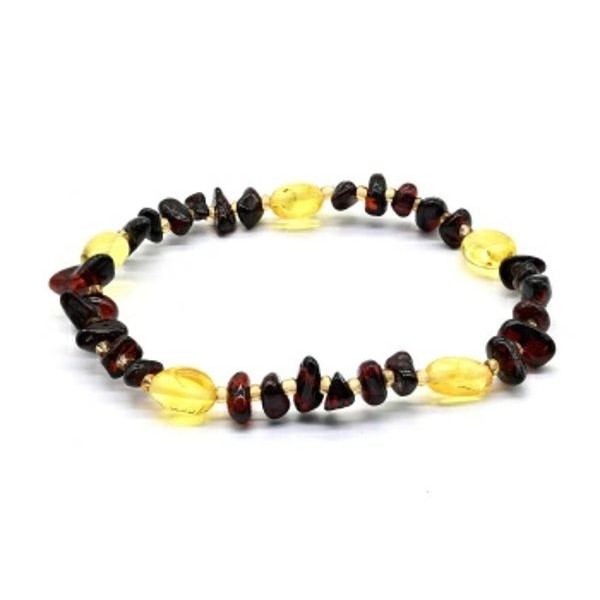 Браслет из янтаря галтовка лимонный, кофейный, 18см