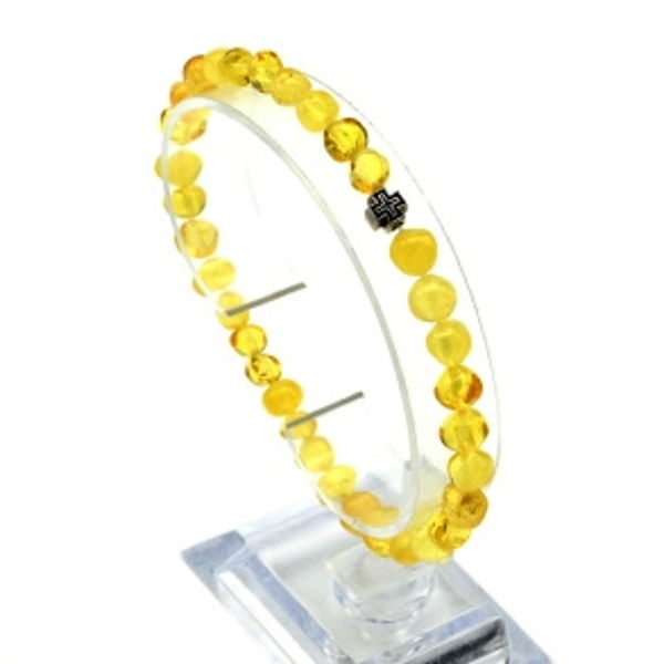 Браслет из янтаря мятый шарик 6-7мм цвет лимонный, 18см