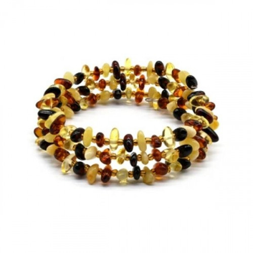 Браслет из янтаря на пружинке 3 витка крошка цвет ассорти, 17см