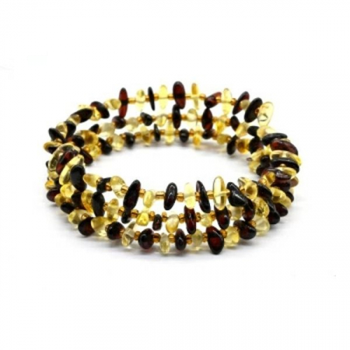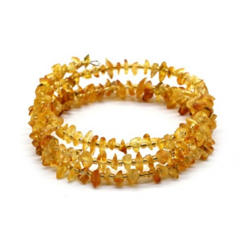 Браслет из янтаря на пружинке 3 витка крошка цвет медовый, 17см