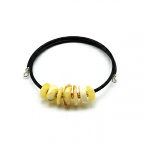 Браслет из янтаря на пружинке диски 10-15мм цвет молочный, 16см