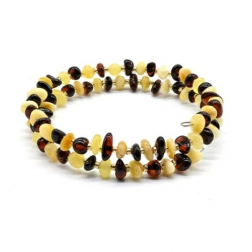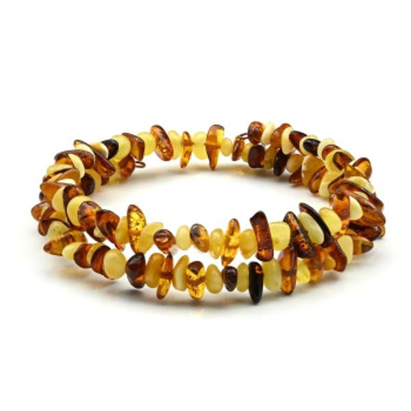 Браслет из янтаря на пружинке крошка цвет молочный, коньячный, 17см
