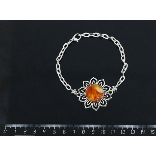 Браслет из янтаря (необработанный), галтовка + цветы из полимерной глины