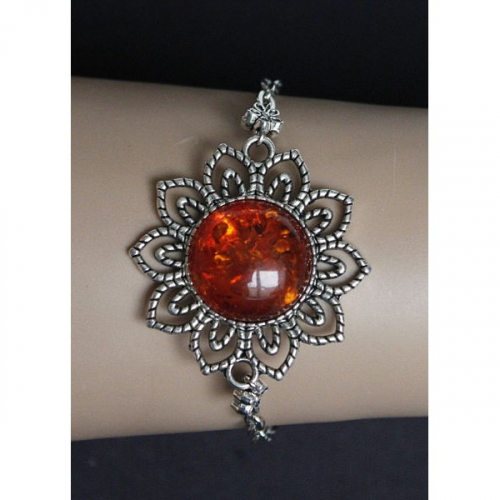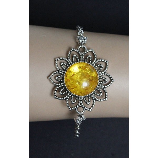 Браслет из янтаря (переплавленый) "цветок", цвет желтый, круг 18мм