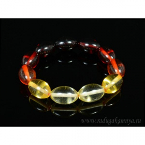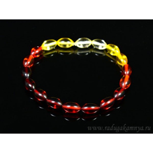 Браслет из янтаря рис 5*9мм радуга лимонный, медовый, вишня